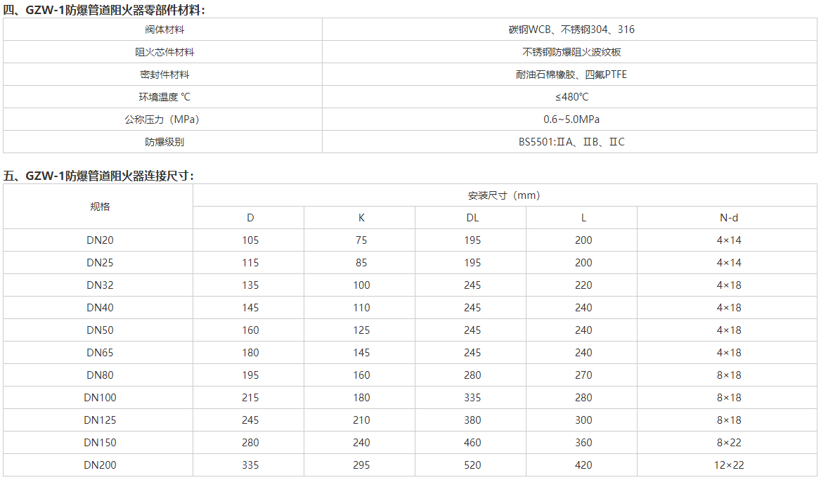 三、GZW-1防爆管道阻火器適用范圍: