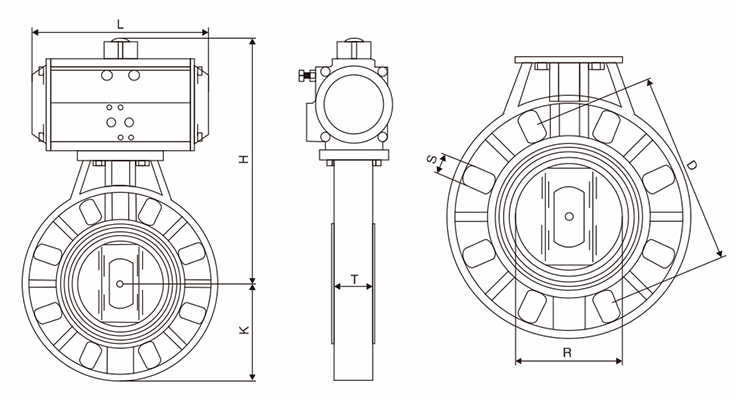 三、D671X氣動(dòng)upvc蝶閥主要外型尺寸